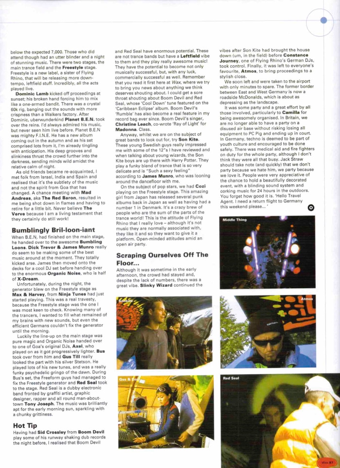 ” ポプラ並木のシンクロする波のような模様、混成テクノマド達の間に行き交う閃光のようなコミュニケーション。輝くキノコアートの下での溶けるようなバンギング・ナイトと朝霧の中で笑顔で飲むホットチャイ。和やかな雰囲気の中で新しいネットワークが生まれる。すべてのパーティーはそれ自体が旅だ。そしてFreeformパーティーでのランダムなサンプリングメモリーは、私の自由なマインドというパスポートに確実にスタンプを残した”