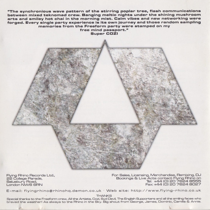 ‘ Live in Germany 2000 ‘ is the first ever Psychill album CD that SUPERCOZI compiled & mixed, and being released from one of the UK Psy-trance pioneer label / beloved Flying Rhino Records in 2001. It was W compilation CDs, associated with their label party that held in 2000 early summer at an abandoned Soviet-era military base in east Germany.