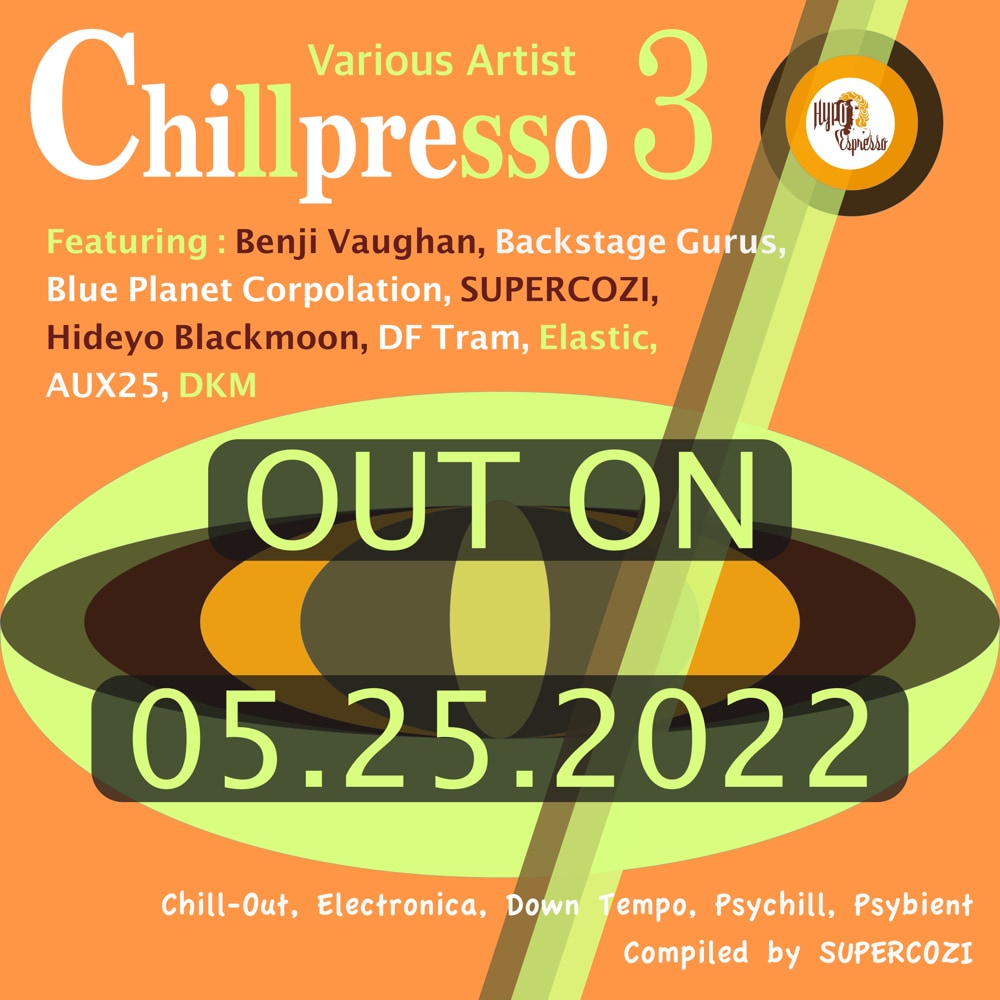 9 hybrid electronica tunes by producers from France, UK, Canada, Germany, U.S.A, Japan, Ibiza, Croatia and Greece .. ‘ Chillpresso 3 ’ is a dazzling showcase of 2022 style early summer chillout delights with the elements of Chillstep, Balealic Ambient groove, World music, Dubtronica, and Trip hop. Compiler Supercozi is a Japanese DJ & producer & Hypo label head whom had been 15 years long resident of Bali’s world known eclectic music venue KuDeTa, also collaborating with many established Chillout labels globally in last 2 decades.