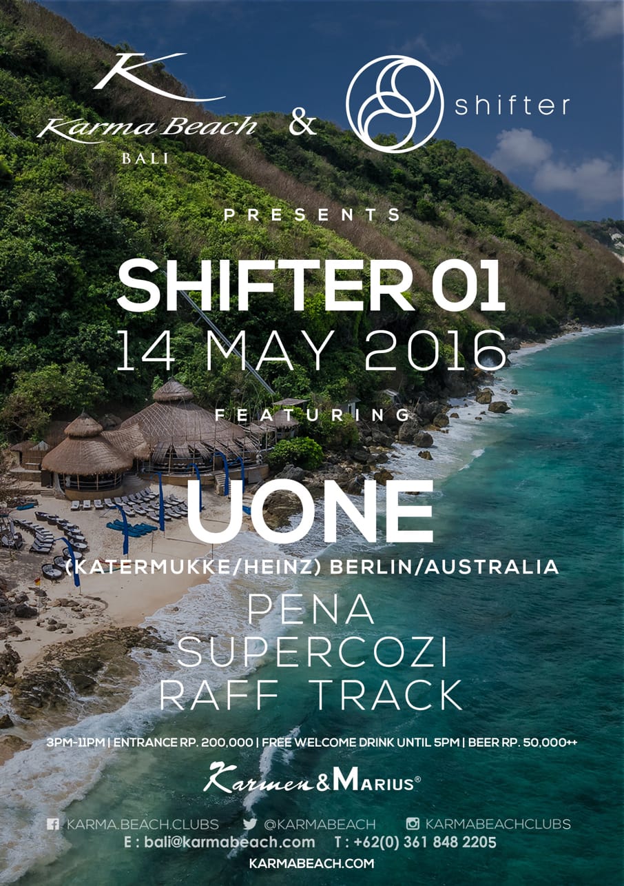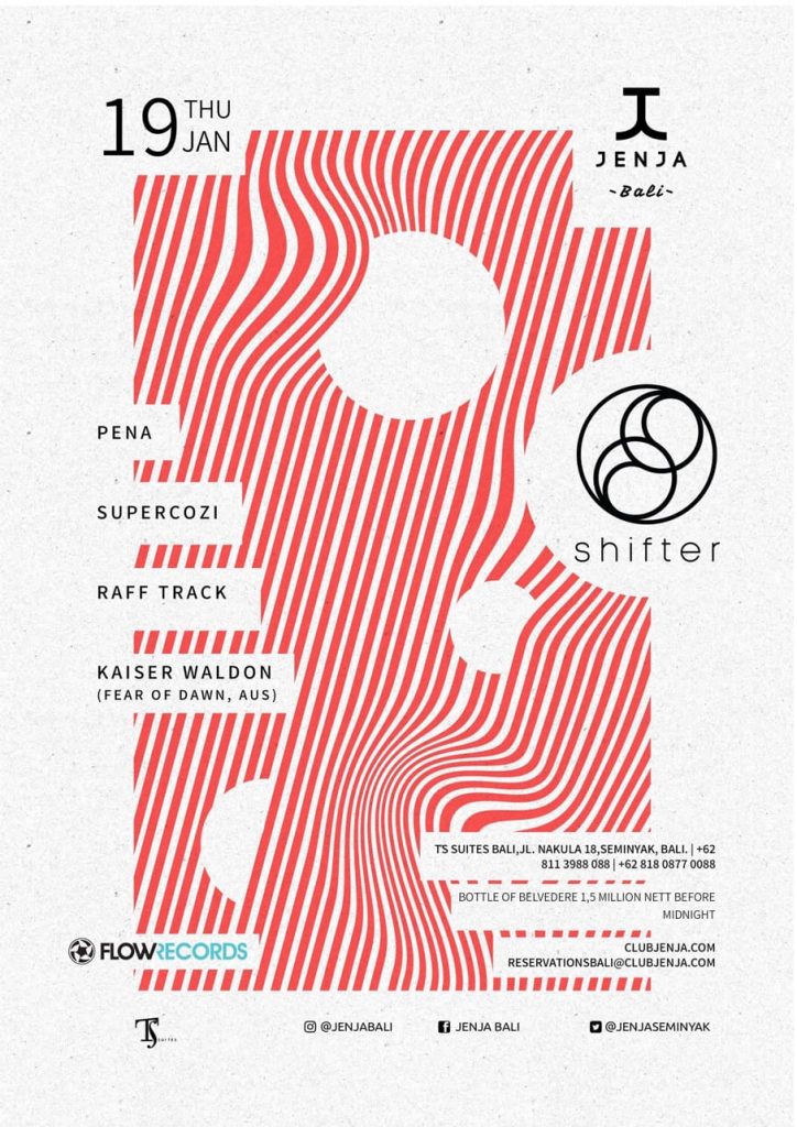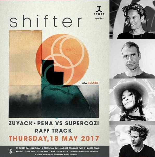 SHIFTER is a Techno collective that Supercozi founded in 2016 in Bali with 2 expats friends : Pena, a Portuguese DJ whom owns and runs a world renowned label FLOW Records since 2000, and Raff Track, a French Techno producer & DJ.